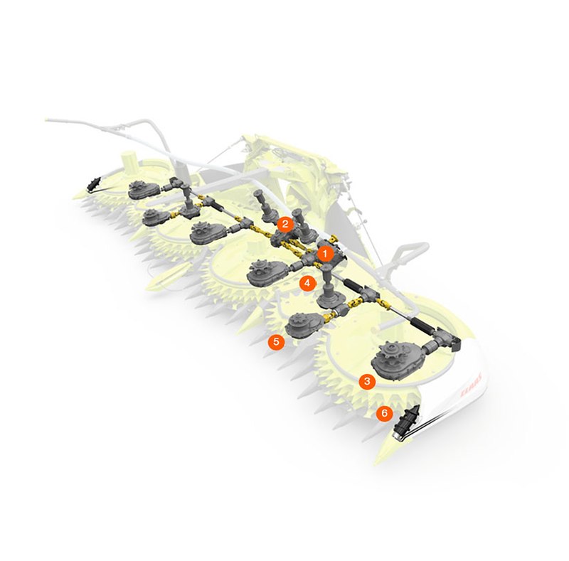 - Architecture extrêmement plate pour une récolte parfaitement régulière et une faible hauteur de coupe jusqu'à 80 mm