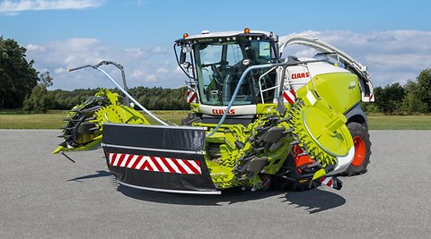 La combinaison de disques d'alimentation de petite et de grande taille assure une grande polyvalence et un rendement élevé. L'ORBIS transporte toutes les plantes en douceur, mais avec fiabilité vers l'alimentation de la JAGUAR. Lors de l'inversion, les plantes déjà fauchées restent sur les disques de grande dimension et sont ensuite guidées vers l'alimentation de l'ensileuse.