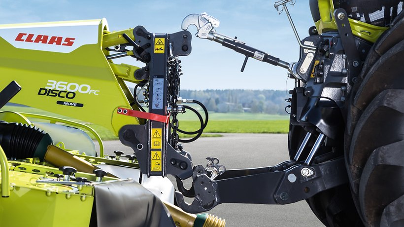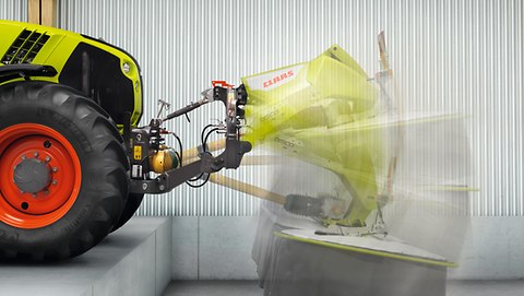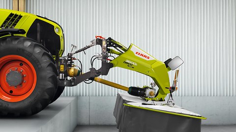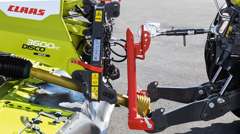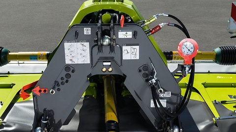 La suspension compacte du relevage avant confère à la faucheuse une garde au sol élevée en fourrière.