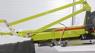 Sur la CONTOUR, une sécurité mécanique protège les tambours. L'axe de pivot incliné de 15° au centre de la faucheuse lui permet de se relever et de passer au-dessus de l'obstacle. Pour reprendre le travail, il suffit de la remettre rapidement en place.
