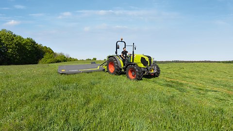 Le relevage avant et la prise de force avant de 1 000 ou 540 ECO sont montés d'usine et ainsi parfaitement intégrés au tracteur. Lorsqu'il est replié, le relevage avant est très compact et le porte-à-faux minime.